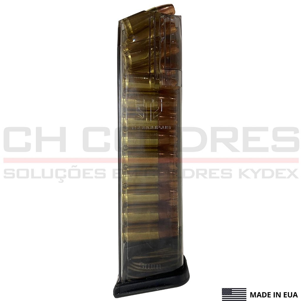 Fabricados pela Elite Tacticas Sustem - ETS - é orgulhosamente 100% made in EUA e produzidos sobre os valores que mantém a vanguarda da inovação e valor para os seus produtos. Totalmente produzidos dentro das especificações e com material dos carregadores originais Glock.