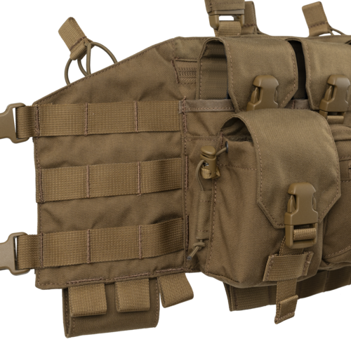 De cada lado do bolso administrativo, encontram-se dois bolsos universais com fecho de fivela, adequados para granadas de fragmentação ou de fumaça, e que podem acomodar dois carregadores de pistola quando equipados com os insertos da série Competition. Ao longo das laterais do colete tático, fitas compatíveis com MOLLE/PALS permitem a fixação de bolsos adicionais.