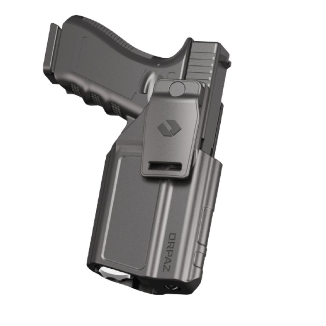 Converta para porte externo (OWB) com o adaptador fino; compatível com todo o ecossistema de acessórios Orpaz (fixação tipo pá, presilha para cinto, sistema MOLLE, fixação na perna, etc.). O design IWB prioriza a discrição e o rente ao corpo durante o porte externo.