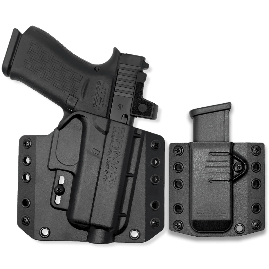 Kit composto por 01 COLDRE OWB + 01 PORTA CARREGADOR OWB, para as pistolas Glock modelos G43 e G43X SEM trilho para lanternas, marca Bravo Concealment.